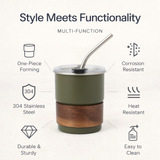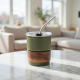 Stackable Dual-Drink Insulated Tumbler with Wood Sleeve 10oz