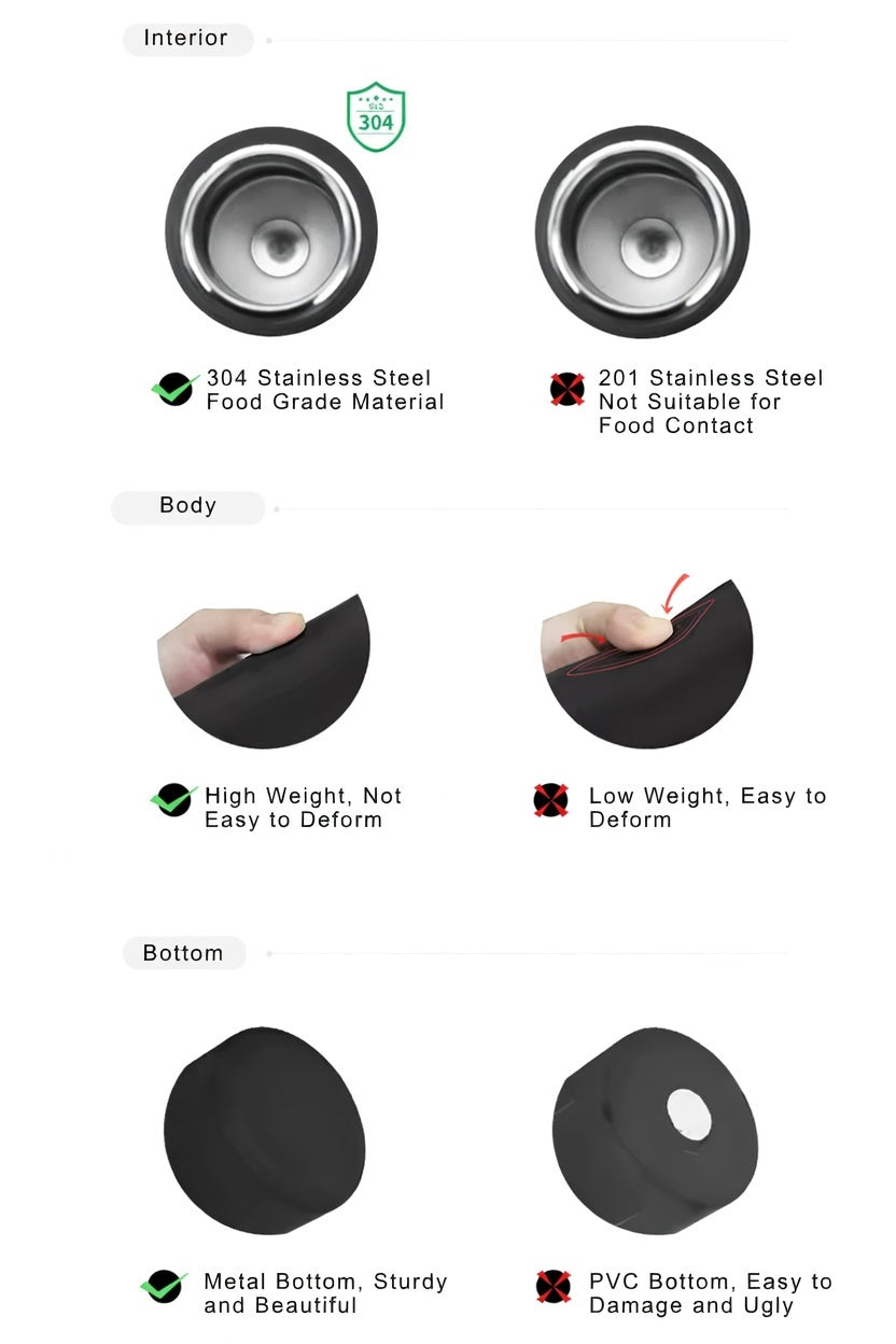 304 Stainless Steel (Interior), 201 Stainless Steel (Exterior)